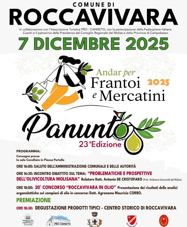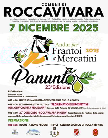 Domenica 7 Dicembre dalle ore 16, vieni a trovarci a Roccavivara per degustare l'olio di oliva di quest'anno e piatti tipici locali nel centro storico del borgo🤗